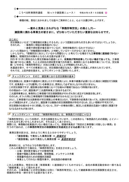 今回の知っトク建設業ニュースは『事務所等労災』についてです。